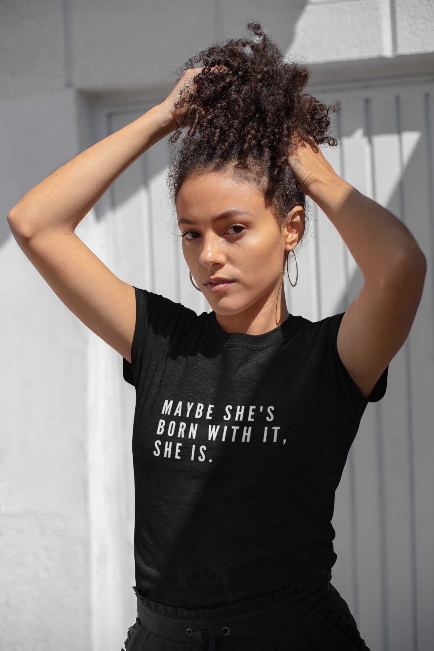 You are a natural beauty. You were born with it! Now show it off, in this tee!